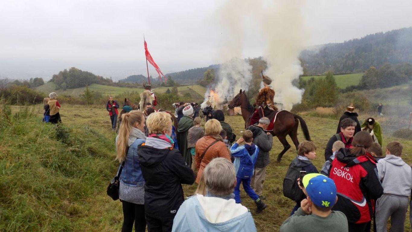 Uczniowie obejrzeli historyczne obrazy i inscenizacje przedstawiające wydarzenia z XVII wieku, które rozegrały się na Żywiecczyźnie i w Częstochowie. Podczas trasy drogą Golgoty Beskidów mogliśmy podziwiać sceny, podczas których górale ratują króla Jana Kazimierza przed Szwedami, król na żywieckim zamku pisze odezwę do mieszczan, szlachty i chłopów. Duże wrażenie wywarły sceny wymarszu górali pod wodzą ks. Stanisława Koszkowica z odsieczą Jasnej Górze, pożegnanie i lamenty płaczących kobiet oraz atak szwedzkiego oddziału na opuszczoną wieś i doszczętne jej spalenie. Mogliśmy poczuć bezsilność i ból pokrzywdzonych, obserwować bitewne zmagania, uczestniczyć w obronie Częstochowy. Huki wystrzałów armatnich, zapach prochu i atak polskiego rycerstwa na długo zostanie w pamięci uczestników tej niecodziennej lekcji historii. Po dotarciu na szczyt Matyski zebrani uczestniczyli we Mszy Świętej w intencji ojczyzny oraz w Apelu Poległych. Na zakończenie zostaliśmy poczęstowani pysznym bigosem i gorącą herbatką.