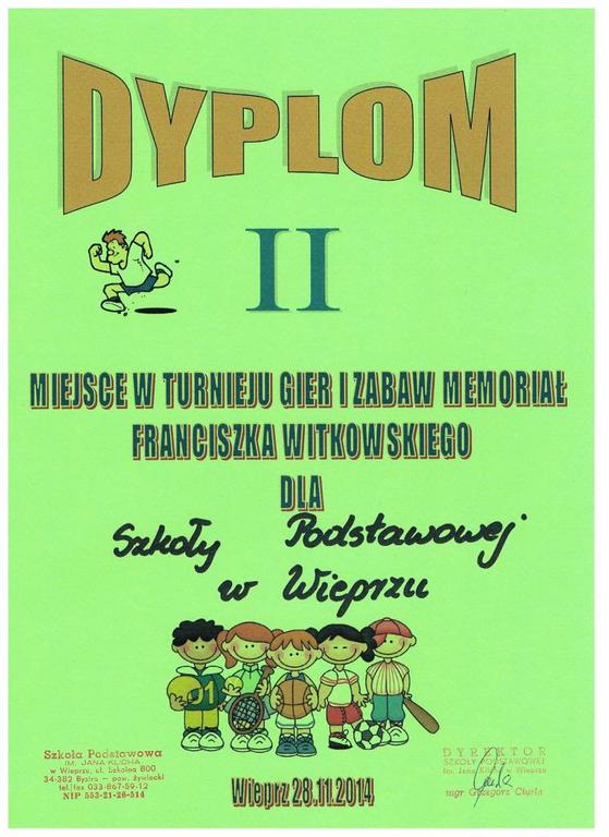 W dniu 28.11.2014 gościliśmy klasy II i III ze szkół podstawowych naszej gminy na II Gminnym Turnieju Gier i Zabaw (Memoriał Franciszka Witkowskiego) organizowanym przez Urząd Gminy Radziechowy – Wieprz we współpracy z naszą szkołą. W turnieju brały udział drużyny z Juszczyny, Radziechów i oczywiście reprezentacja naszej szkoły.