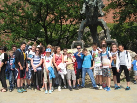 Swoją pieszą wędrówkę po mieście rozpoczęliśmy z Placu Matejki. Kierując się na Wawel mijaliśmy po drodze Pomnik Grunwaldzki, Barbakan, Mury Miejskie. Dłużej zatrzymaliśmy się na krakowskim Rynku, gdzie zajrzeliśmy do Sukiennic, Kościoła Mariackiego, a także mogliśmy kupić pamiątki oraz pyszne krakowskie obwarzanki. Przechodząc ulicą Grodzką na Wawel oglądaliśmy piękne, stare, zabytkowe kościoły, które mają niejednokrotnie bardzo ciekawe historie. Na Wzgórzu Wawelskim obejrzeliśmy Zamek Królewski, zwiedziliśmy Kaplicę Zygmuntowską, a także zeszliśmy do grobów Marszałka Piłsudskiego oraz Prezydenta Lecha Kaczyńskiego z żoną. Ostatnim punktem naszej wycieczki po Krakowie była Smocza Jama.