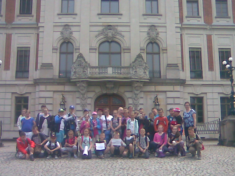 W piękny, słoneczny poranek - 2 czerwca - uczniowie klas czwartych wraz z wychowawczyniami E. Figurą i E. Ostrowską oraz p. A. Mrowiec udali się na autokarową wycieczkę do Pszczyny. Po ponad godzinnej podróży czwartoklasiści dotarli na miejsce. Zwiedzanie rozpoczęli od Zagrody Żubrów, gdzie mogli zapoznać się ze zwyczajami nie tylko żubra, największego ssaka w Europie, ale również poznać inne zwierzęta zamieszkujące tereny południowej Polski tj. muflony, jelenie, sarny, daniele oraz pozostałych mieszkańców obiektu tj.: osiołka, kaczki krzyżówki, łabędzie oraz pawie indyjskie. Obejrzeli również ekspozycję muzealną prezentującą faunę i florę różnych stref krajobrazowych. Następnie udali się do Skansenu – Zagrody Wsi Pszczyńskiej, gdzie znajduje się kilkanaście zabytków architektury drewnianej z okolic Pszczyny, pochodzących w zdecydowanej większości z XIX wieku. Po krótkim pobycie w skansenie nadszedł czas na kolejny punkt programu, czyli zwiedzanie zamku. Uczniowie mogli zobaczyć wspaniałe wnętrza, komnaty, salony, galerie, bibliotekę, a w nich oryginalne przedmioty pochodzące z XIX i XX w. stanowiące wyposażenie tychże pomieszczeń oraz trofea myśliwskie pochodzące z różnych stron świata. Po zakończeniu zwiedzania spacerem przez miasto wycieczkowicze udali się do autokaru, by wyruszyć w drogę powrotną.