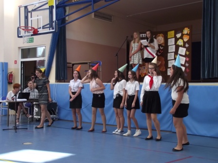 W drugiej części akademii nasi starsi koledzy przypomnieli zalety szkoły, radzili młodszym, jak przetrwać rok szkolny, a przede wszystkim w humorystyczny sposób zwrócili uwagę na to, że jeszcze tylko 10 miesięcy i „znów będą wakacje, kochane wakacje!!!”