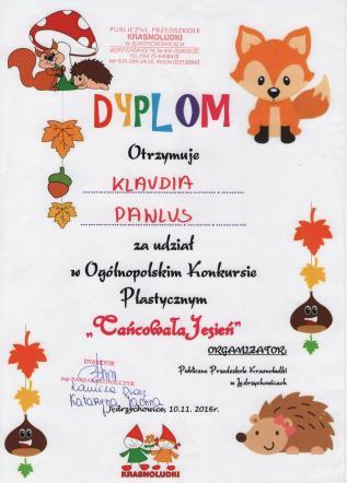 Nasze przedszkolaki wzięły udział w następujących OGÓLNOPOLSKICH konkursach plastycznych: „Tańcowała Jesień”, „Kolorowa Pani Jesień”, „Nietypowa Jesień”, „Jesienne dekoracje”.