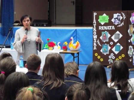 Nasi uczniowie poznawali twórczość pani Piątkowskiej już od dawna. Dzięki Radzie Rodziców, zwłaszcza pani Elżbiecie Cudek, do biblioteki trafiło sporo książek tej autorki. Dzieci na lekcjach języka polskiego i lekcjach wychowawczych czytały książki autorki z zapartym tchem. Już w roku szkolnym 2016/17 odbyło się kilka spotkań z powieściami pani Renaty w ramach cyklu „Piątki z Piątkowską”. Od kiedy pisarka została zaproszona do szkoły, uczniowie przygotowywali się do spotkania z nią, na lekcjach poznali historię Malali, czytali książkę, tworzyli ilustracje do powieści, z inicjatywy uczniów klasy Vb powstał piękny plakat o twórczości p. Renaty, korytarze szkolne ozdobiły okolicznościowe gazetki poświęcone autorce.