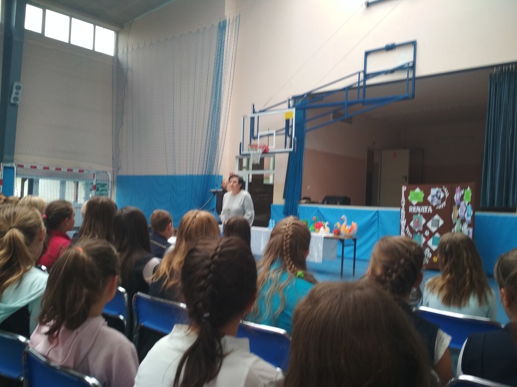 Pani Renata Piątkowska odwiedziła naszą szkołę 19 września, podczas spotkania z uczniami klas piątych, szóstych i siódmych na sali gimnastycznej opowiadała o realiach panujących w Pakistanie. Zapoznanie uczniów ze zwyczajami i normami przyjętymi w tym państwie, pozwoliło im choć trochę wyobrazić sobie z jaką rzeczywistością miała do czynienia bohaterka książki Malala. Pisarka barwnie opowiadała o dzieciństwie dziewczynki, o tym w jakim środowisku dorastała, o jej rodzicach, o strachu, który zawsze im towarzyszył, ale przede wszystkim mówiła o odwadze, o wielkim pragnieniu chodzenia do szkoły, zdobywania wiedzy, która daje możliwości i jest jedyną szansą na lepszą przyszłość. Malala za swoje przekonania, odwagę i umiłowanie nauki zapłaciła bardzo wysoką cenę.