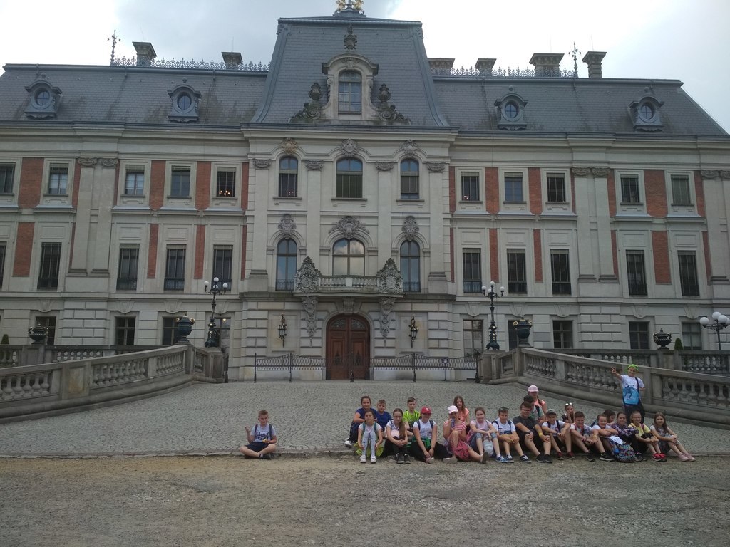 29 maja uczniowie klas V pod opieką pań wychowawczyń udały się na wycieczkę do Pszczyny. Po zwiedzeniu Skansenu Wsi Pszczyńskiej oraz udaliśmy się spacerkiem przez park do Zgrody żubrów. Tam po godzinnej przerwie na posiłek zobaczyliśmy zwierzęta w mini-zoo. Prawie trafiliśmy na karmienie żubrów. Następnie, przeszliśmy parkiem pod Zamek Książęcy. Podczas zwiedzania zamku poznaliśmy jego ciekawą historię. Dowiedzieliśmy się, że właścicielami pałacu byli magnaci węgierscy Turzowie, dolnośląski ród szlachecki Promnitzowie, książęta Anhalt Köthen-Pless, a po nich hrabiowie von Hochberg, którzy otrzymali tytuł księcia von Pless. Historia pałacu sięga średniowiecza jednak jego obecna szata jest neobarokowa. Muzeum zamkowe posiada około 80% oryginalnego wyposażenia wnętrz z przełomu wieków XIX/XX. Dzięki temu możemy obejrzeć jak tutaj wszystko wyglądało za czasów księcia Hochberg von Pless. Fakt ten powoduje, iż zamek w Pszczynie należy do najcenniejszych zabytków architektury rezydencjonalnej w Polsce.