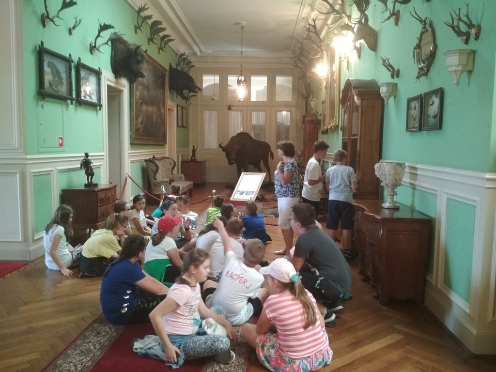 Podczas wycieczki po zamku, udało nam się pozwiedzać liczne jego kondygnacje. Oglądaliśmy wspaniale umeblowane komnaty, sypialnie, łazienki, piękne obrazy, porcelanę oraz trofea myśliwskie. Wnętrza zamku wywarły na nas ogromne wrażenie. Najbardziej podobały nam się: pokój księżnej Daisy oraz westybul, czyli duży hol ze schodami paradnymi, sala lustrzana, w której odbywają się koncerty i ważne uroczystości, pokój myśliwski wypełniony rożnego rodzaju porożami oraz potężna biblioteka. Z wielką uwagą wysłuchaliśmy pani przewodniczki, która na koniec oprowadziła nas także po Zbrojowni. Po długim zwiedzaniu zmęczeni udaliśmy się do Warowni pod Pszczyną, gdzie wzięliśmy udział w warsztatach o życiu w średniowieczu.