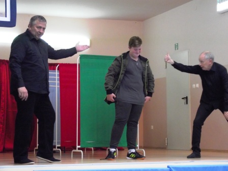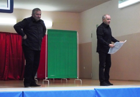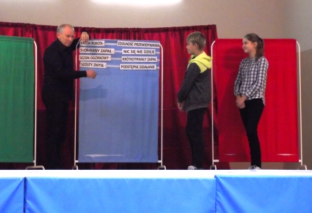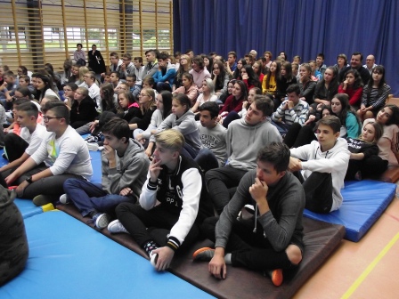 2 października uczniowie klas VI – VIII oraz 3 gimnazjum mieli okazję przenieść się na godzinę w niezwykle barwny świat związków frazeologicznych. Obejrzeli spektakl przygotowany przez aktorów z Krakowa, którzy w ciekawy i zabawny sposób przypomnieli lub wyjaśnili zebranym pochodzenie i znaczenie powszechnie używanych wyrażeń, zwrotów i fraz.