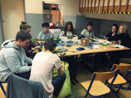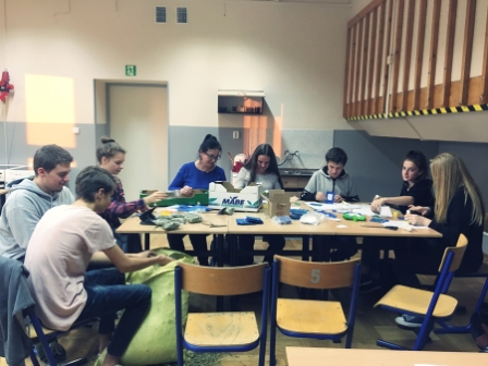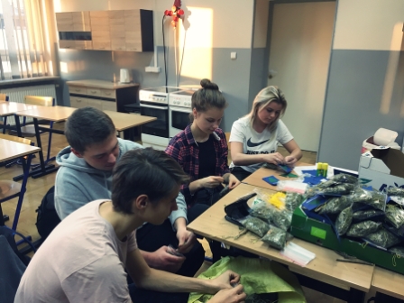 W dniu 29.11.2018 r. Szkolny Klub Wolontariatu przeprowadził akcję, której celem było przygotowanie świątecznych zestawów dla podopiecznych Stowarzyszenia Dzieci Serc w Radziechowach. Wolontariusze wykazali się ogromnym zaangażowaniem i chęcią do pracy, powierzone im zadania wykonywali dokładnie i sumiennie. Następne spotkanie planowane jest na 3.12.2018 r. Uczniowie pracowali pod kierunkiem: mgr A. Jakubiec i mgr M. Krzuś.