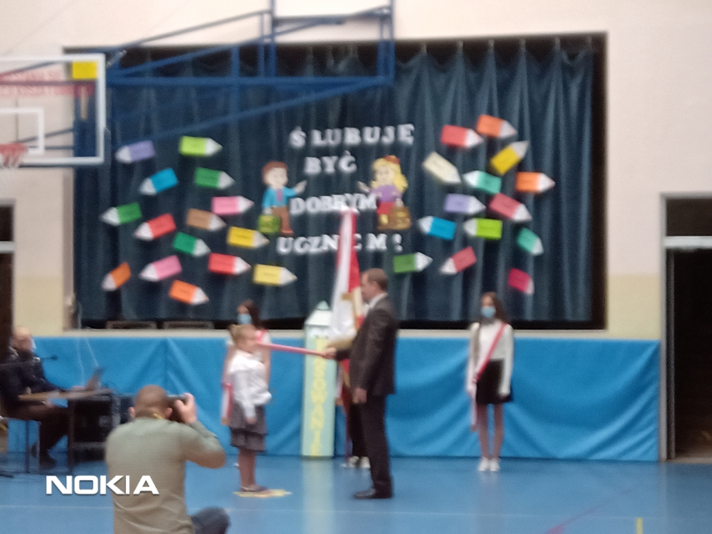 Pierwszoklasiści zaprezentowali także piękny program artystyczny, w którym zdali pierwszy egzamin na ucznia. Śpiewająco odpowiadali o naszej ojczyźnie, szkolnej nauce oraz zasadach zachowania. Wszyscy uczniowie otrzymali pamiątkowe dyplomy i legitymacje szkolne.