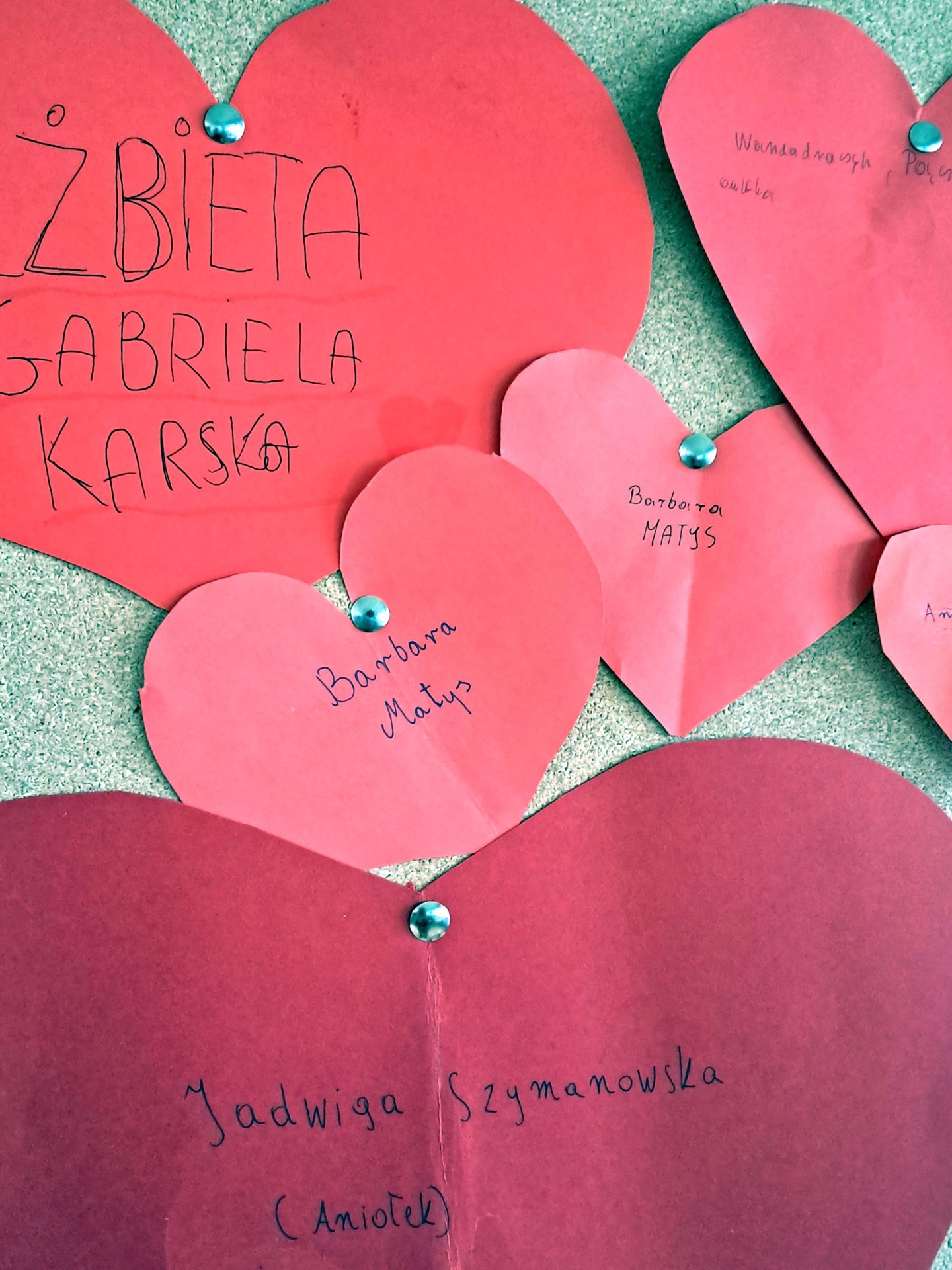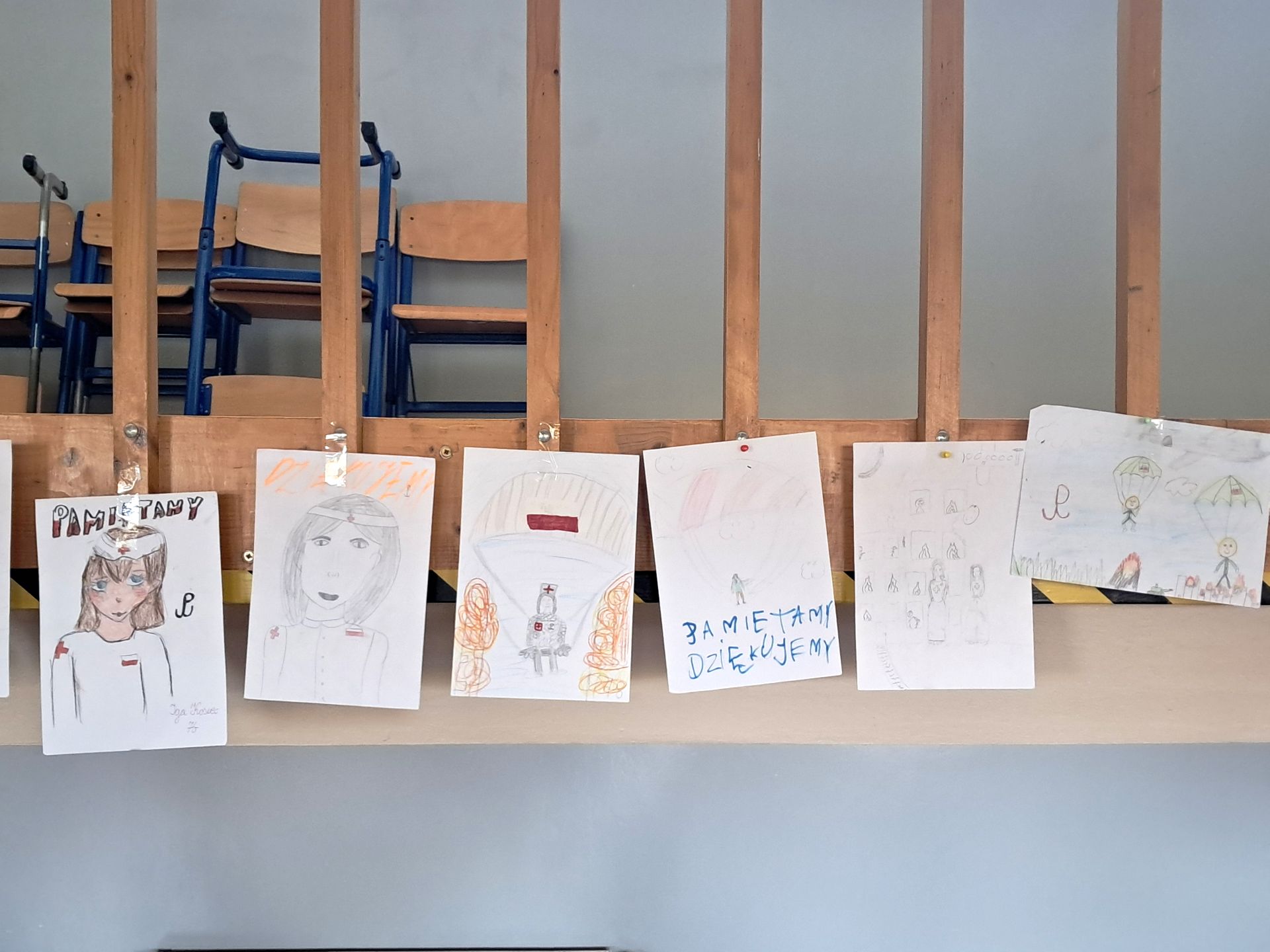 Następnie uczniowie tworzyli portrety bohaterskich kobiet, serduszka z ich nazwiskami i pseudonimami ❤️, a także gazetki klasowe upamiętniające ich czyny.