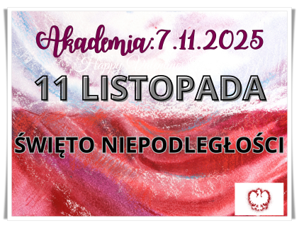 W piątek, 7 listopada 2025 r., o godzinie 9:00 odbędzie się w naszej szkole uroczysta akademia z okazji 107. rocznicy odzyskania przez Polskę niepodległości.