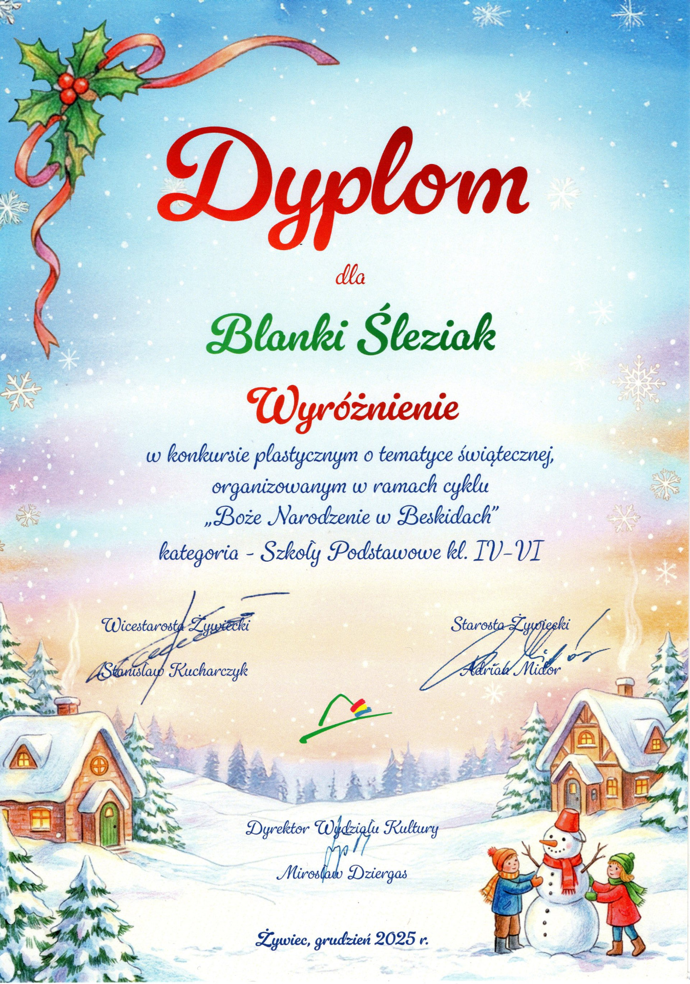Laureaci Powiatowego Konkursu Plastycznego " Boże Narodzenie w Beskidach"