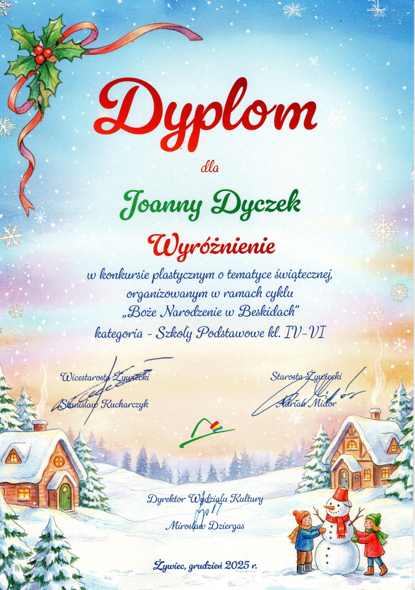 Wyróżnienie - Joanna Dyczek kl. VIA